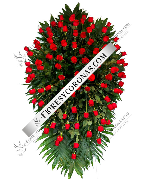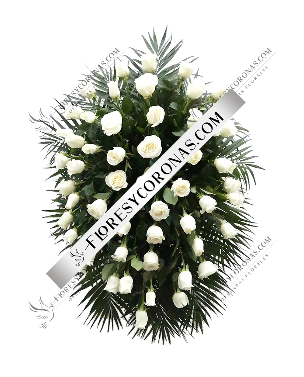 Medallón en color blanco diseñado con 50 rosas y follaje.