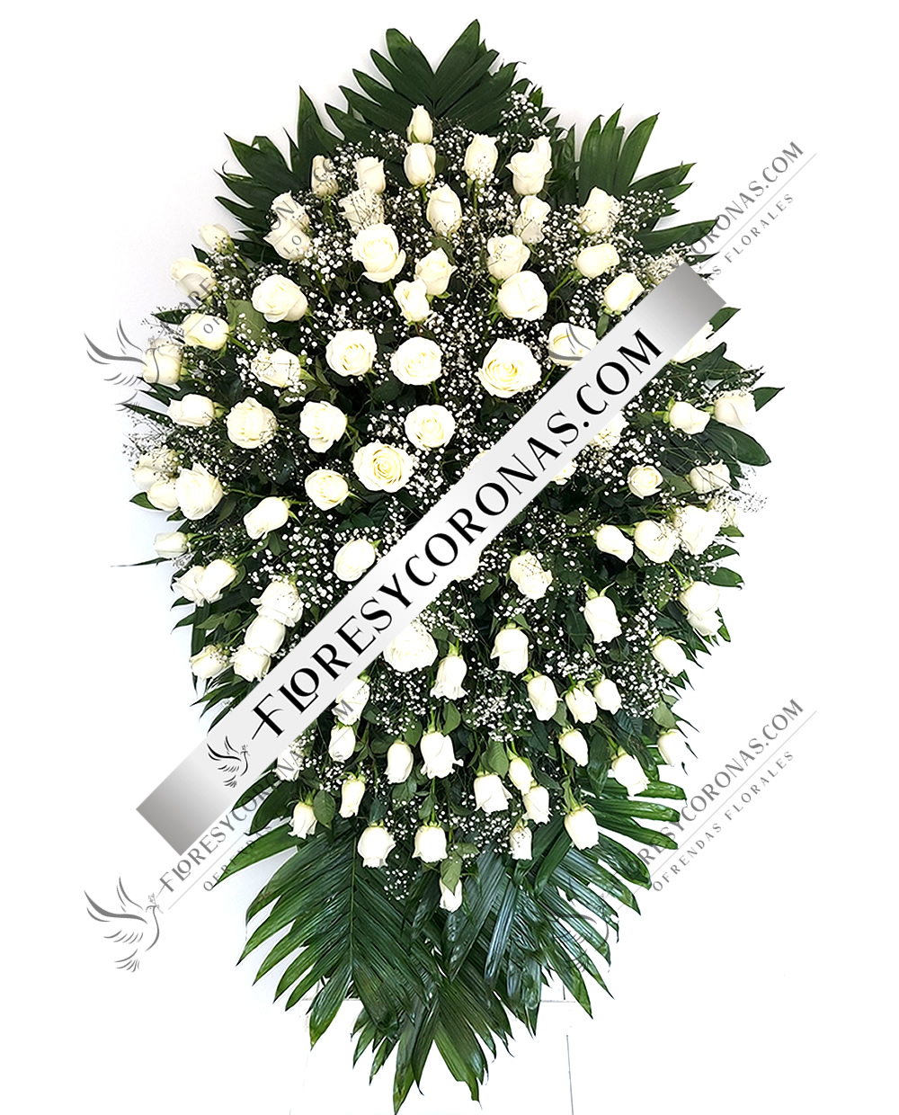 Medallón jumbo diseñado con 100 rosas, baby breath y follaje.